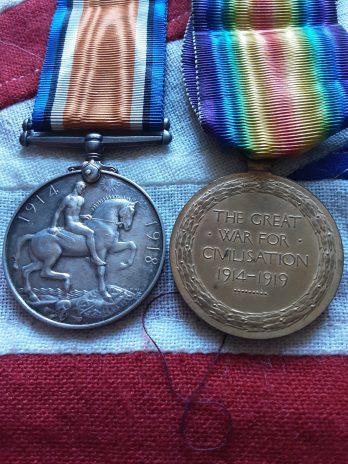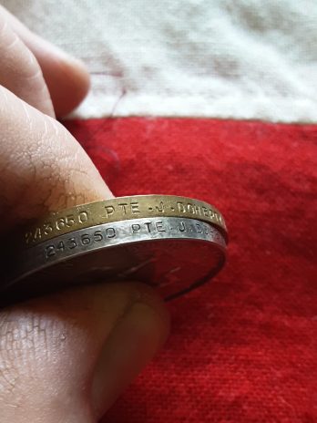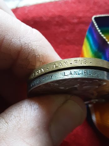 Ww1 pair on long original ribbons named to 243650 pte j Doherty lan fus .