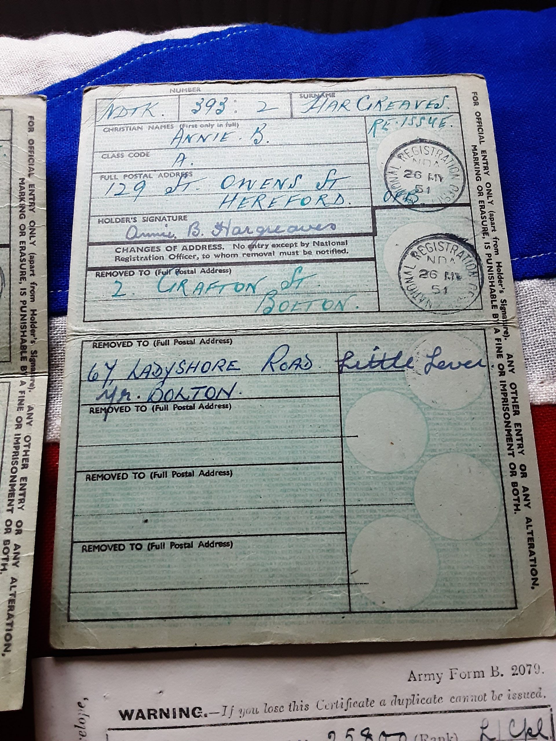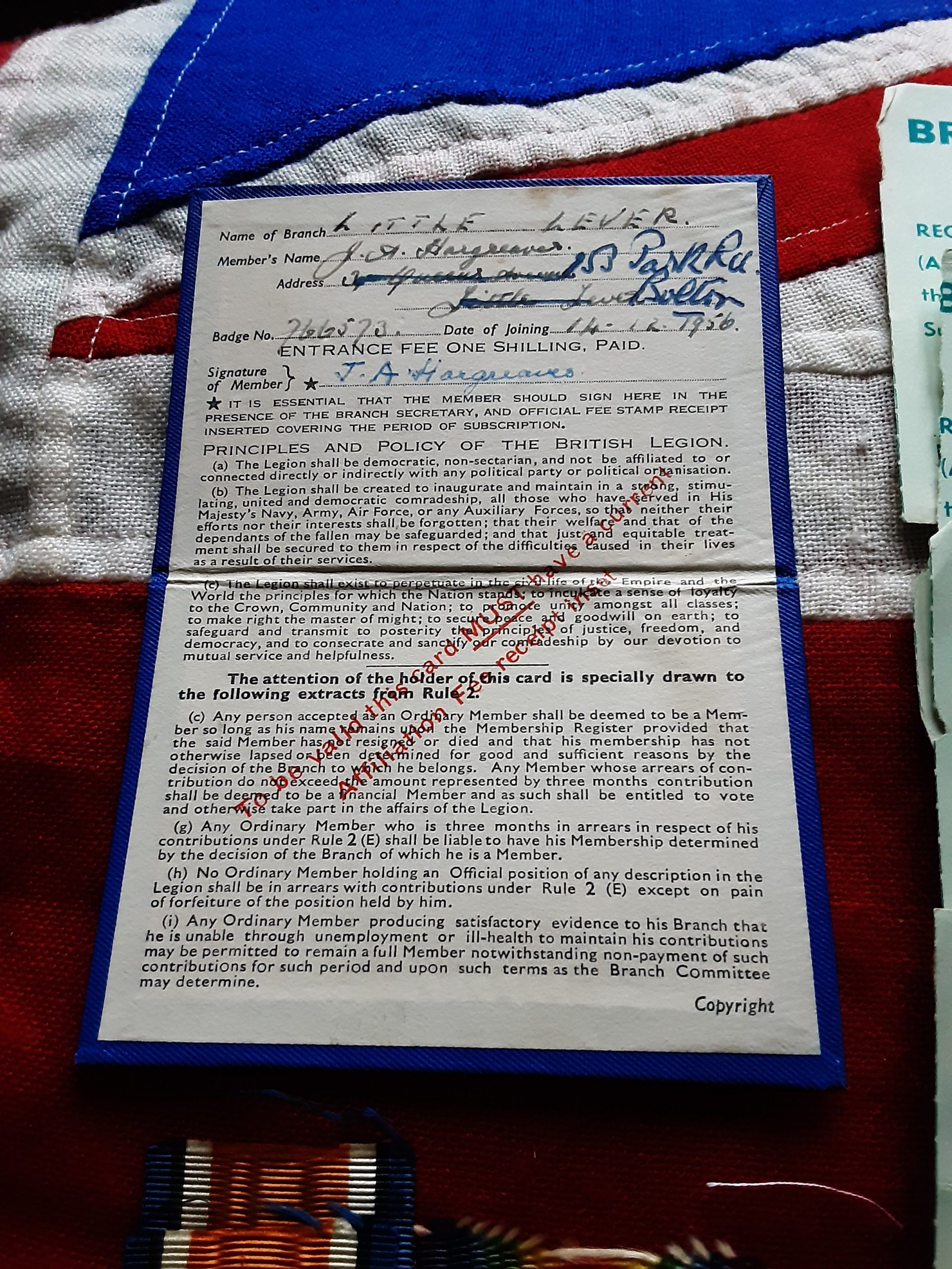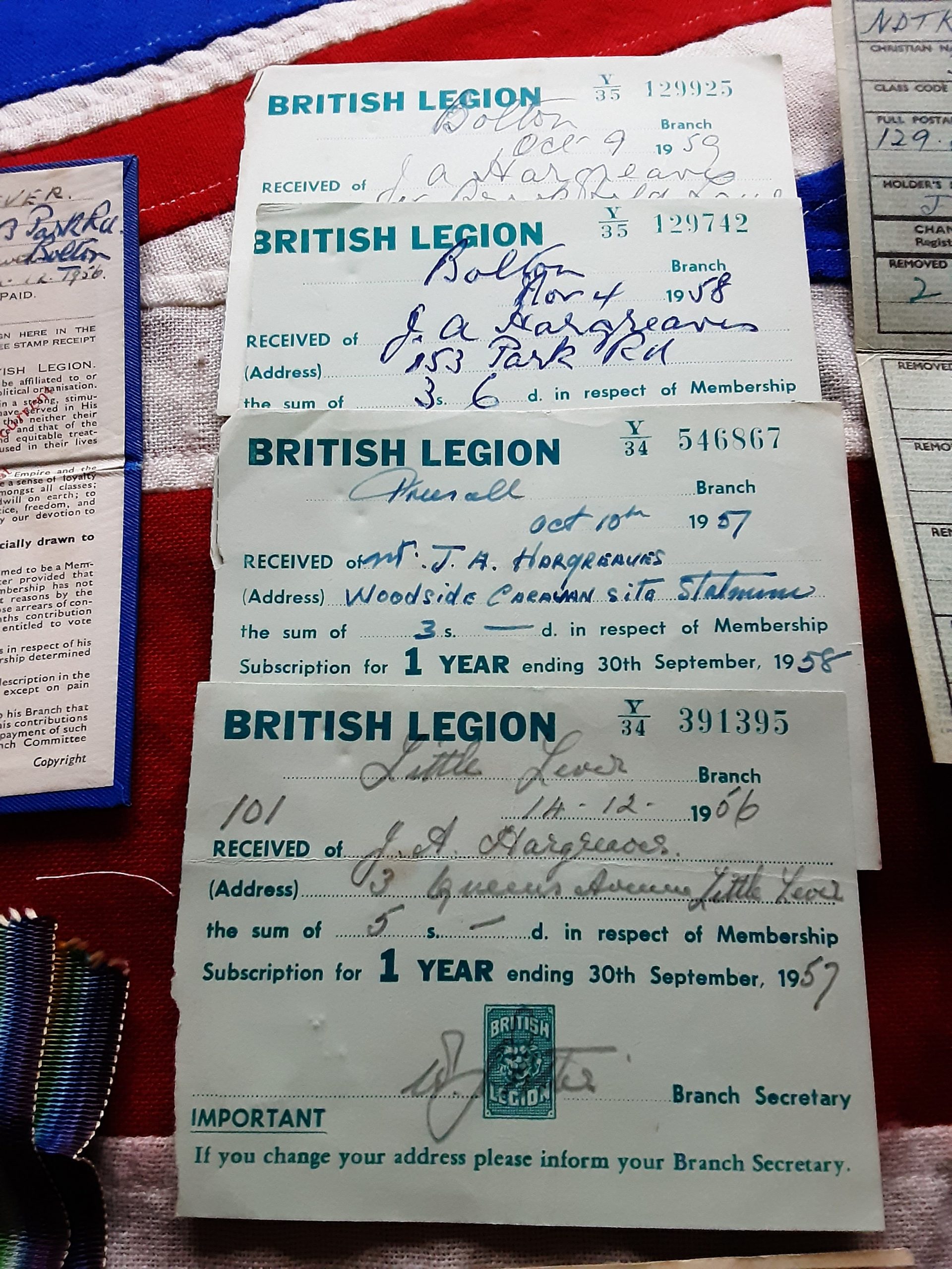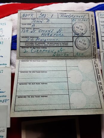 Also in is his British legion membership to Little lever branch and 2 reissued I’d books to him and a relative .