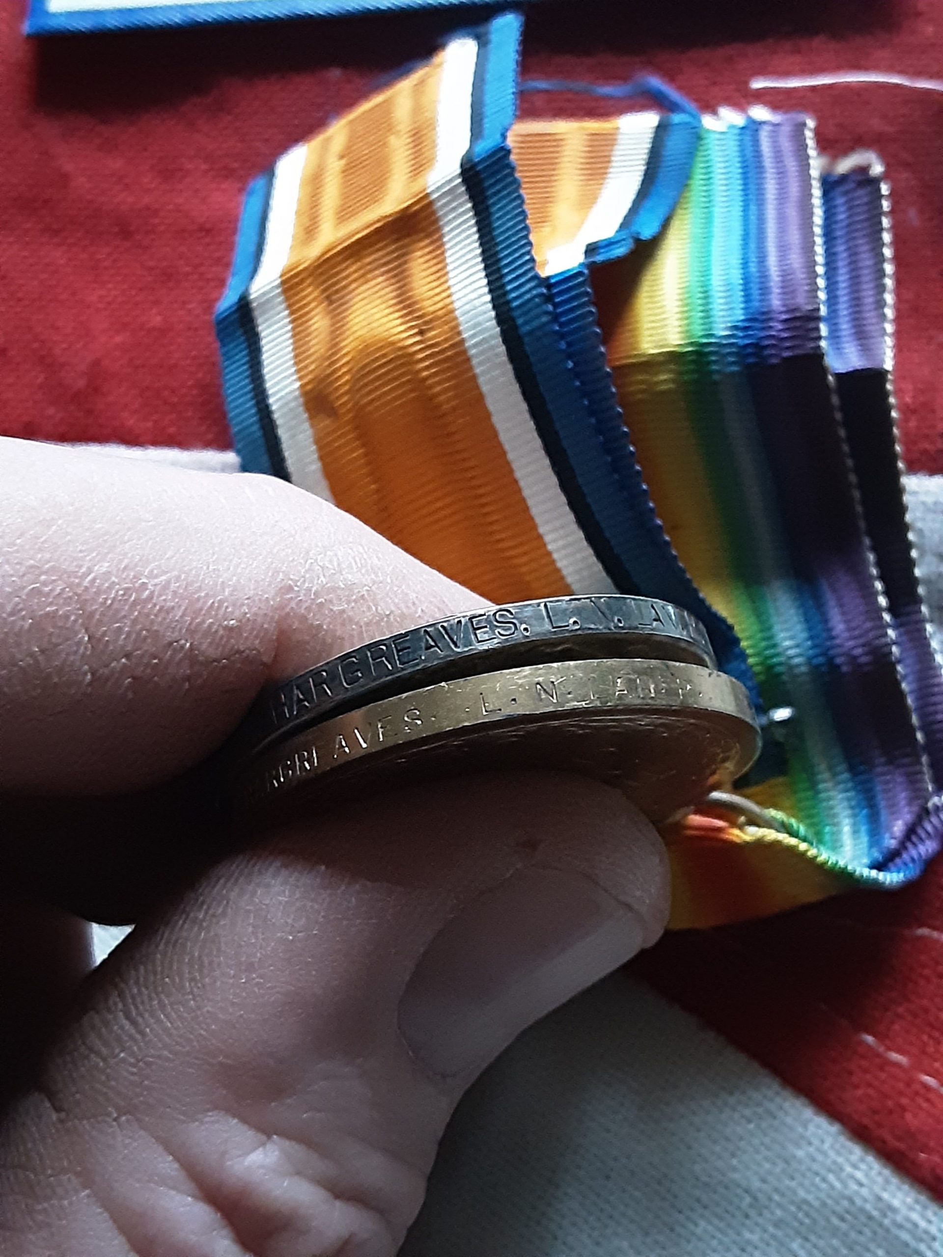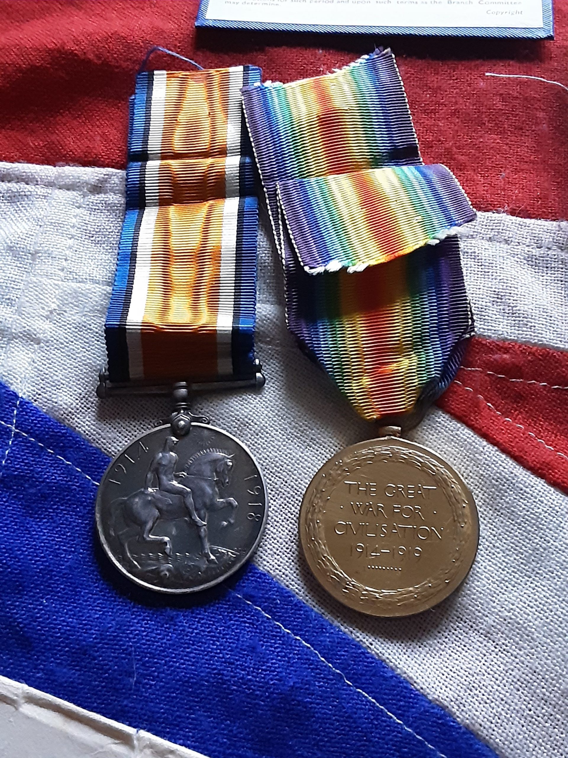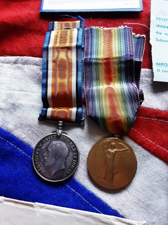 Ww1 pair on original ribbons named to 25800 pte j a Hargreaves lnlr .