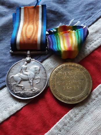 A ww1 British War Medal and Victory on short original ribbon named to.