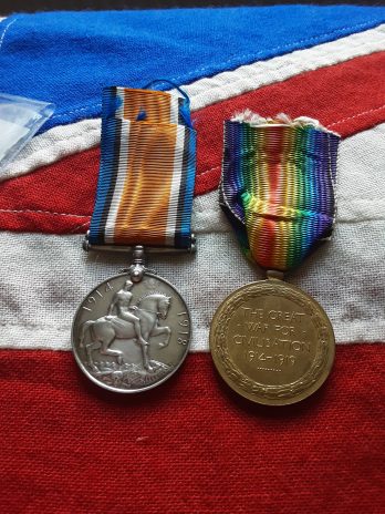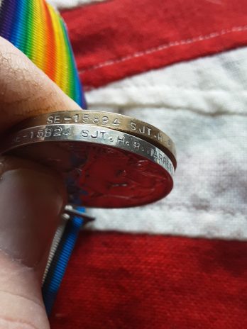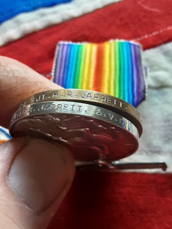 Ww1 pair on short original ribbons named to se 15824 sjt h r jarrett avc .