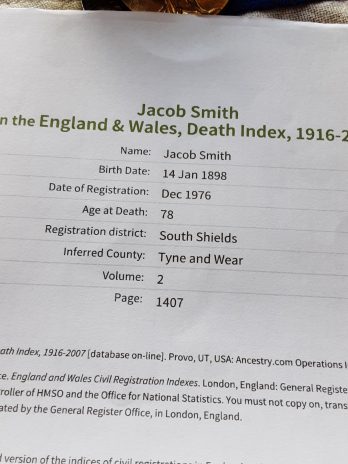 Jacob ( John on some records) Smith was born at South shields in Durham 14th January 1898 .
