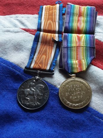 A ww1 pair on original (bwm ribbon tatty) Ribbons named to.