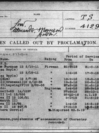 WWI Victory. Engineman Alexander Morrison Gordon Low. Born Bucksburn, Aberdeenshire. Died Toronto, Canada. HMS Stephen Furness. Murmansk RussiaWWI Victory. Engineman Alexander Morrison Gordon Low. Born Bucksburn, Aberdeenshire. Died Toronto, Canada. HMS Stephen Furness. Murmansk Russia