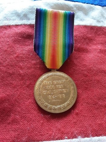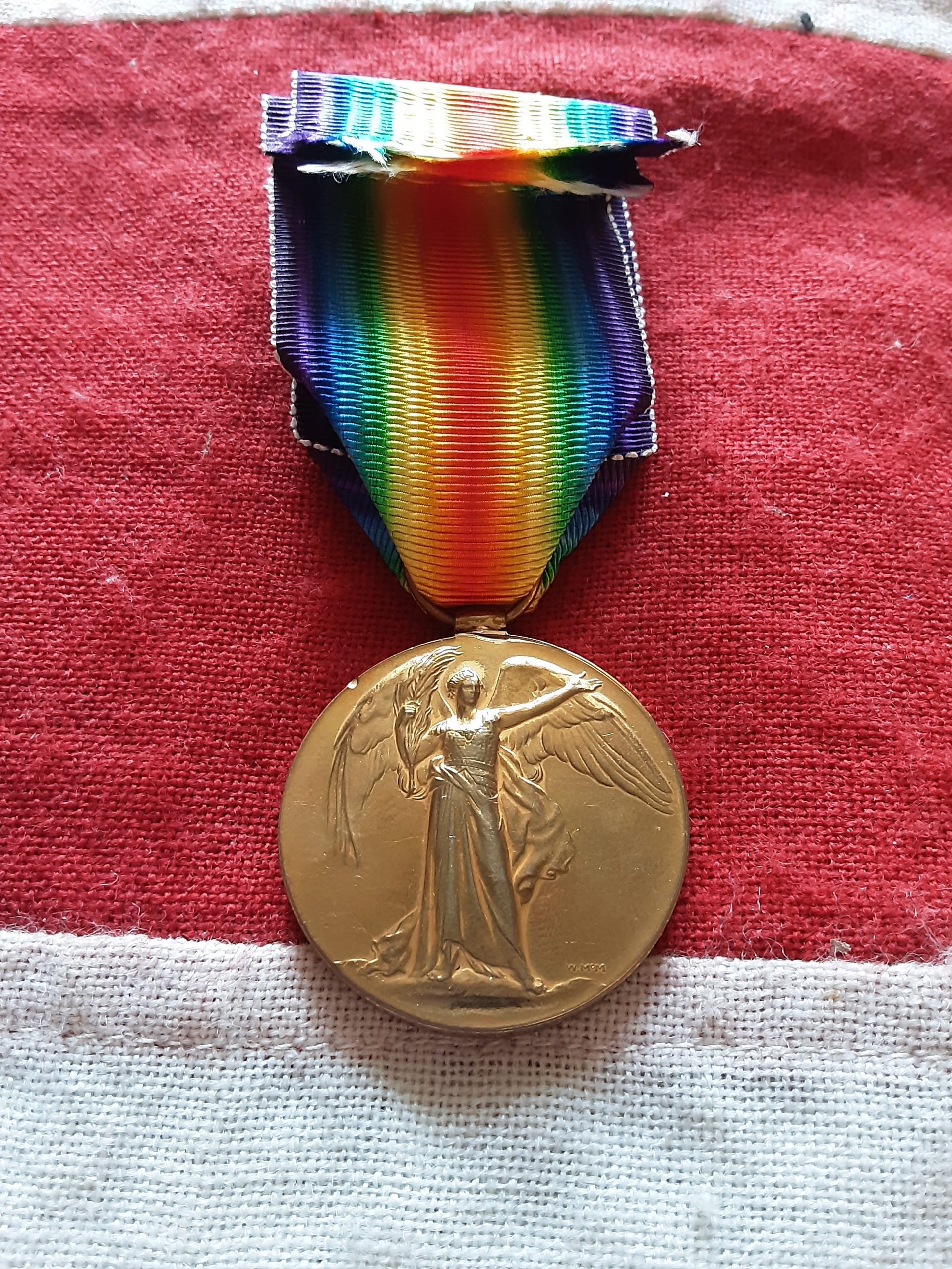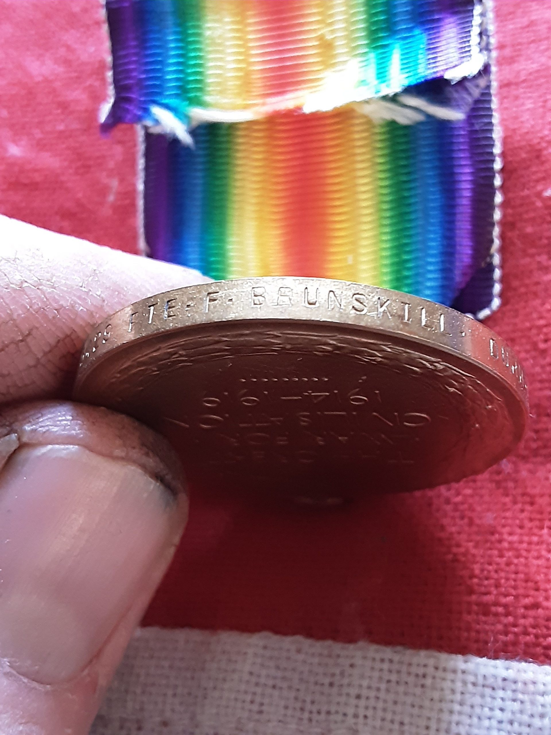 Ww1 Victory on original ribbon named to 6-3429 pte f brunskill durh li.