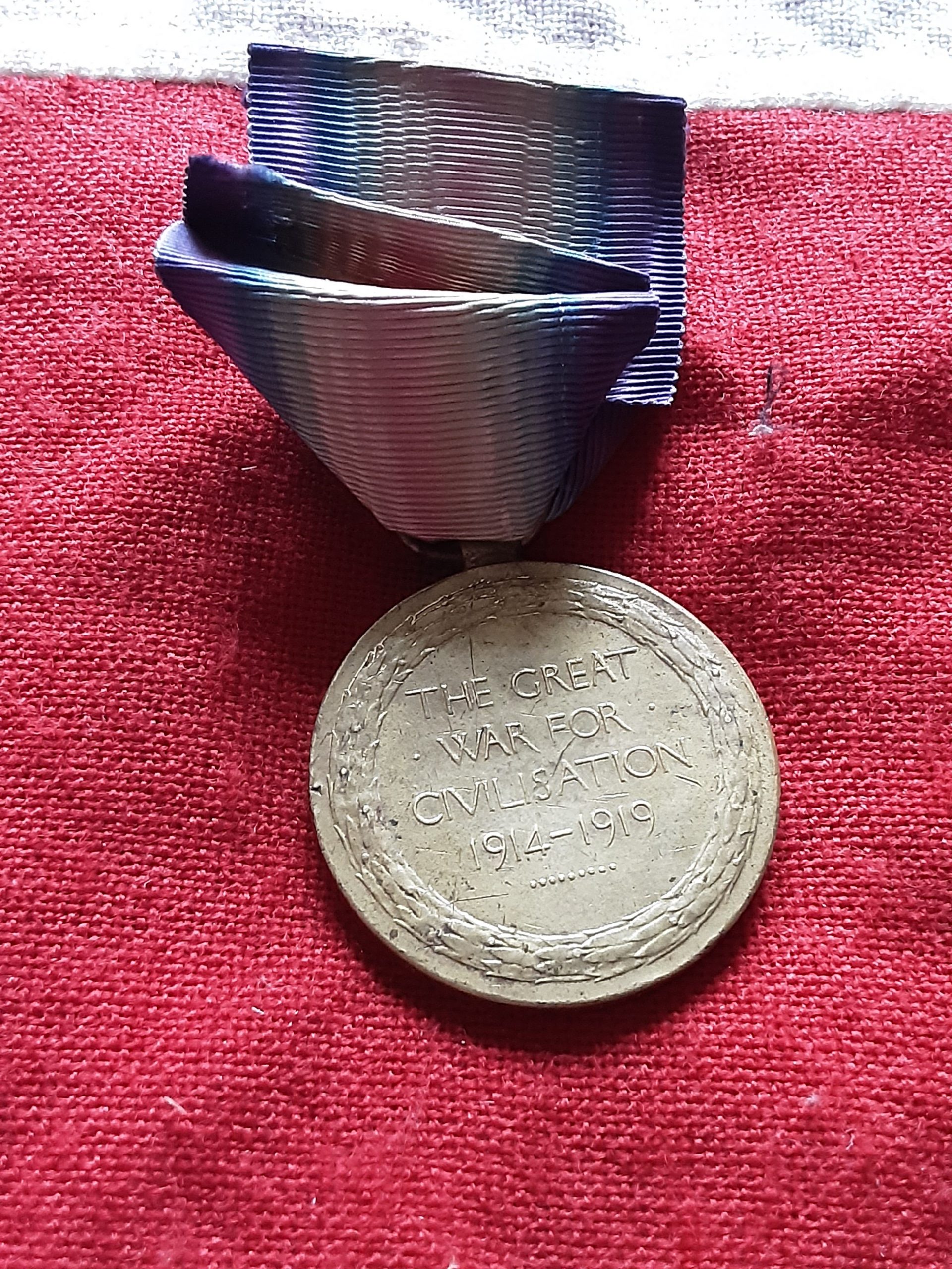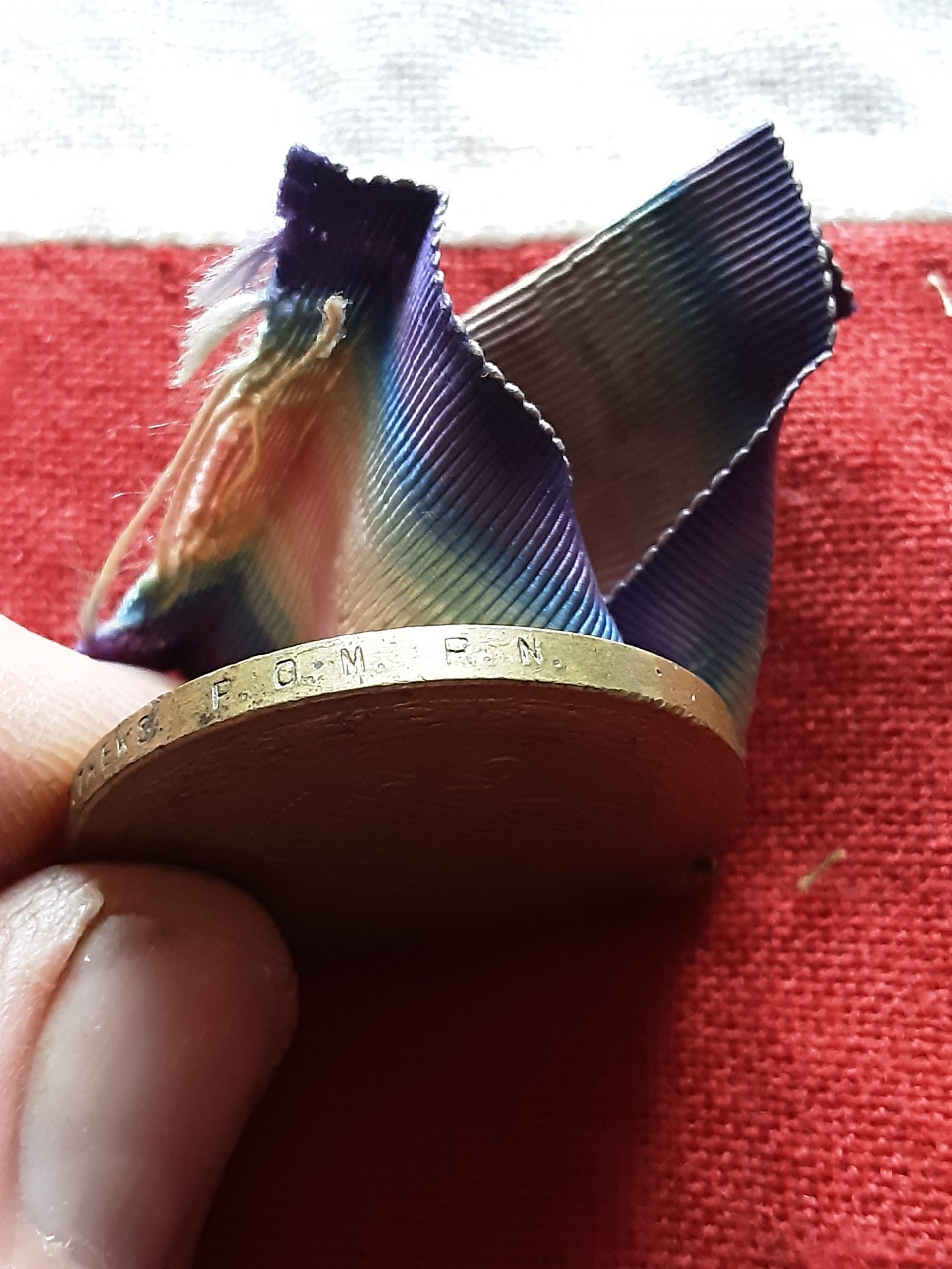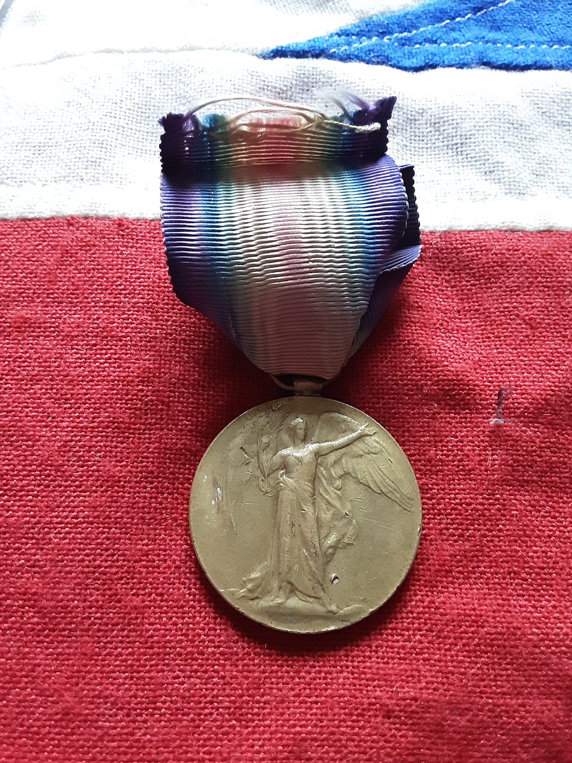 Ww1 Victory Medal on short faded original silk ribbon named to.