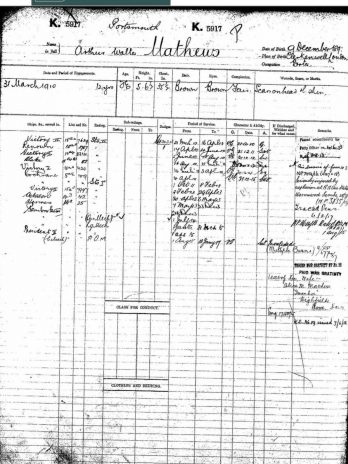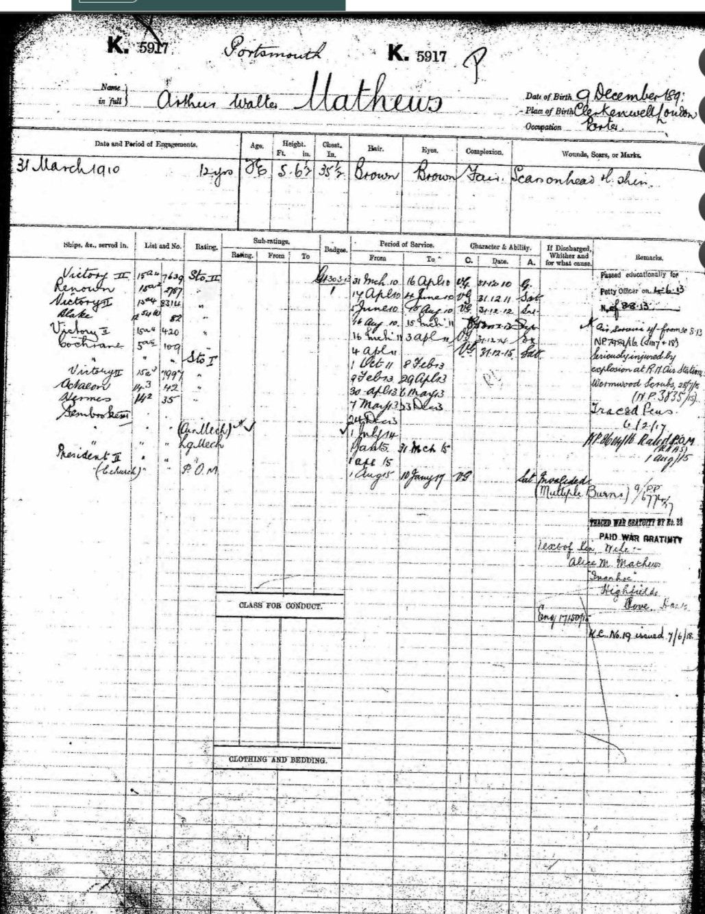 Arthur Walter Mathew’s was born 9th December 1890 at clerkenwell.