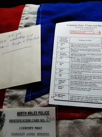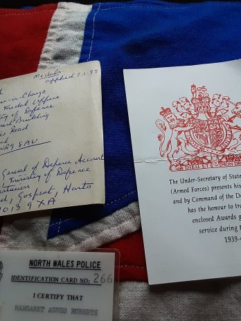 Inc is her paybook as pictured , medal transmittal slip, North Wales civilian I’d card with photo , private purchase I’d bracelet and other misc paperwork relating to her .
