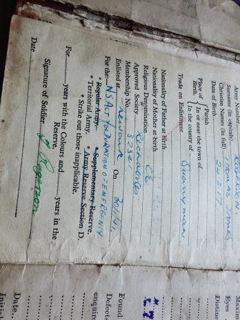 Soldiers Service and paybook relating to 214502 Thomas James Rogerson born 24.2.17.