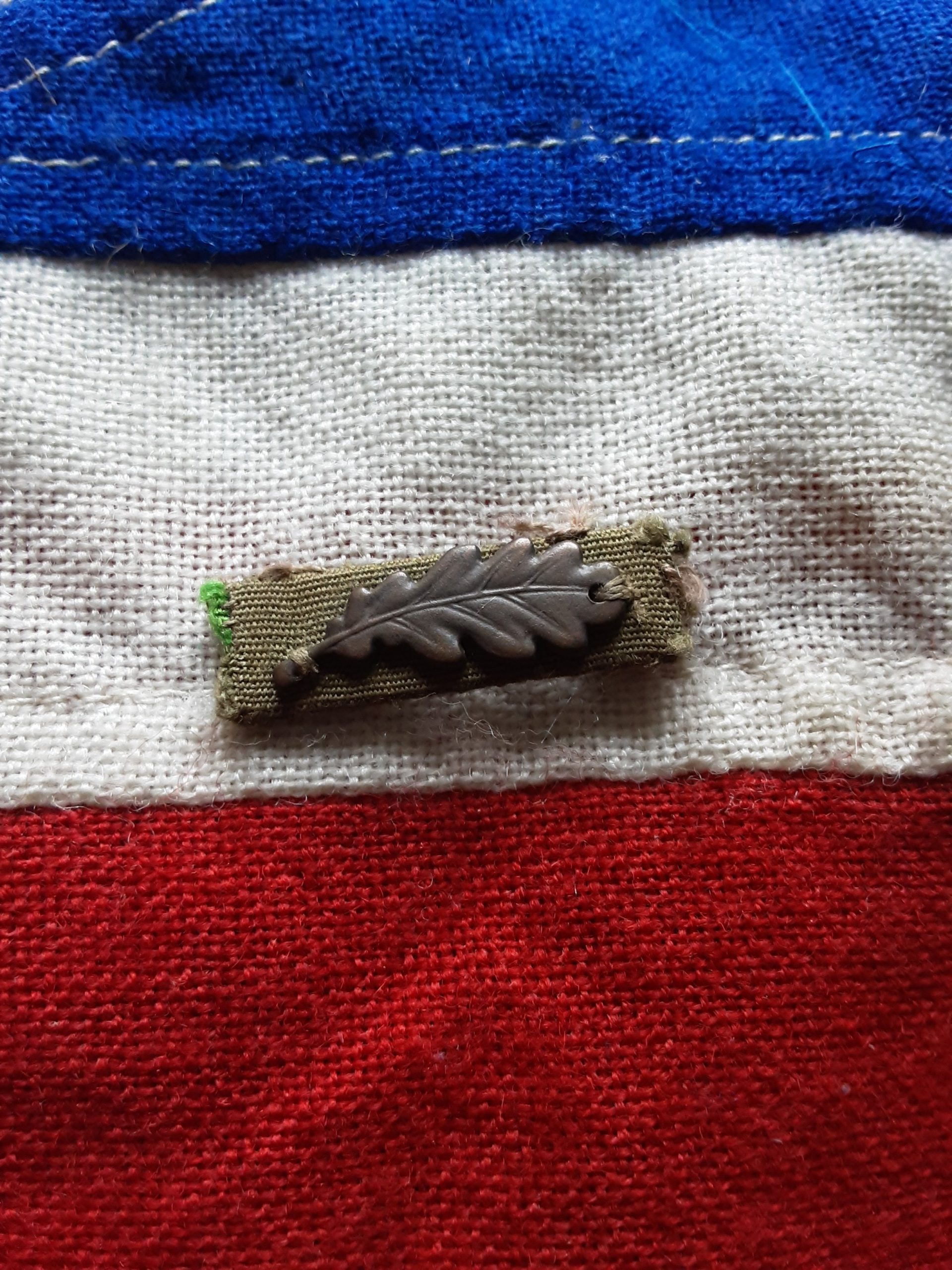A ww2 era Mid mentioned in despatches oakleaf Obviously mounted on green before the issue of other medals .