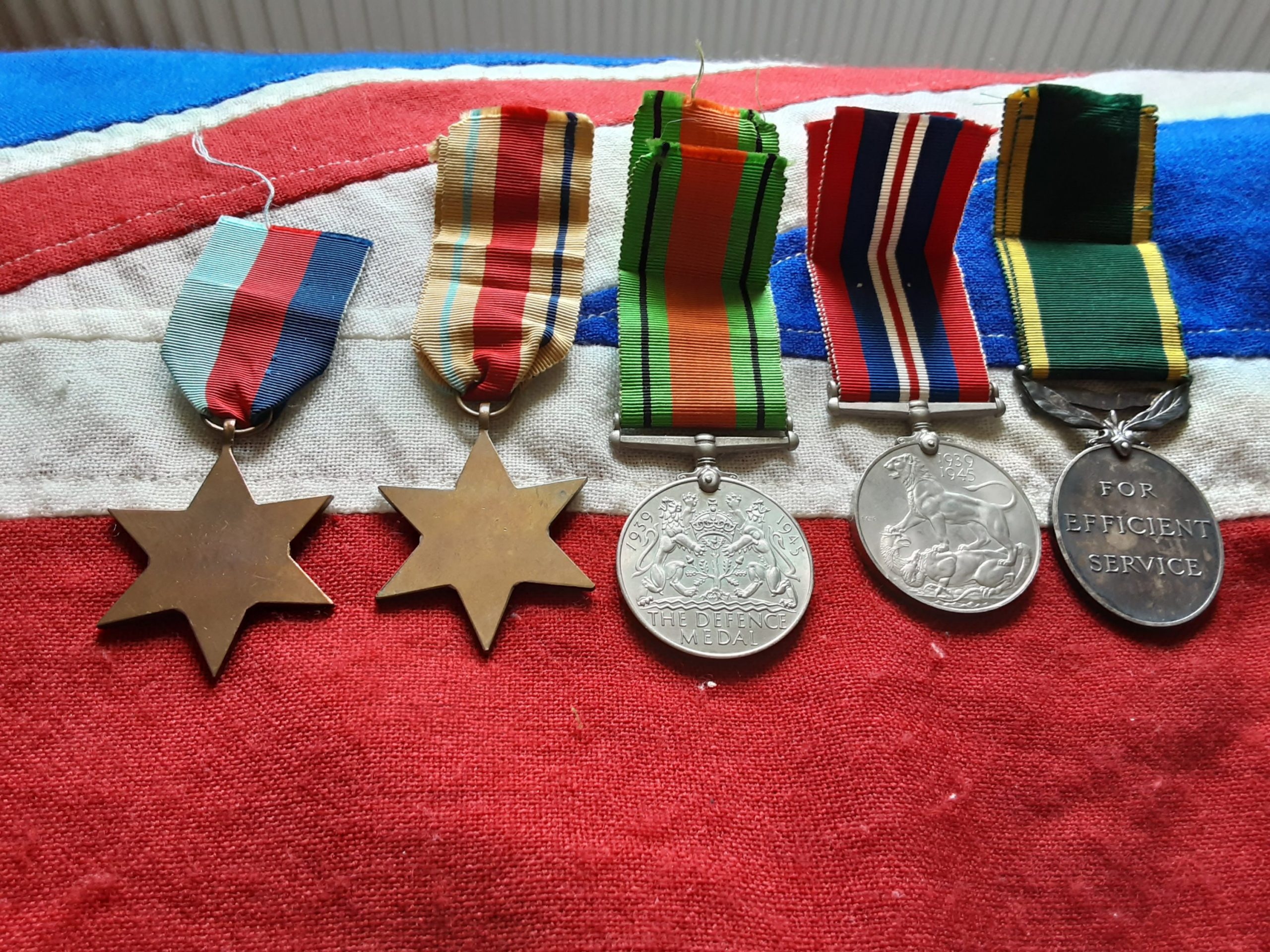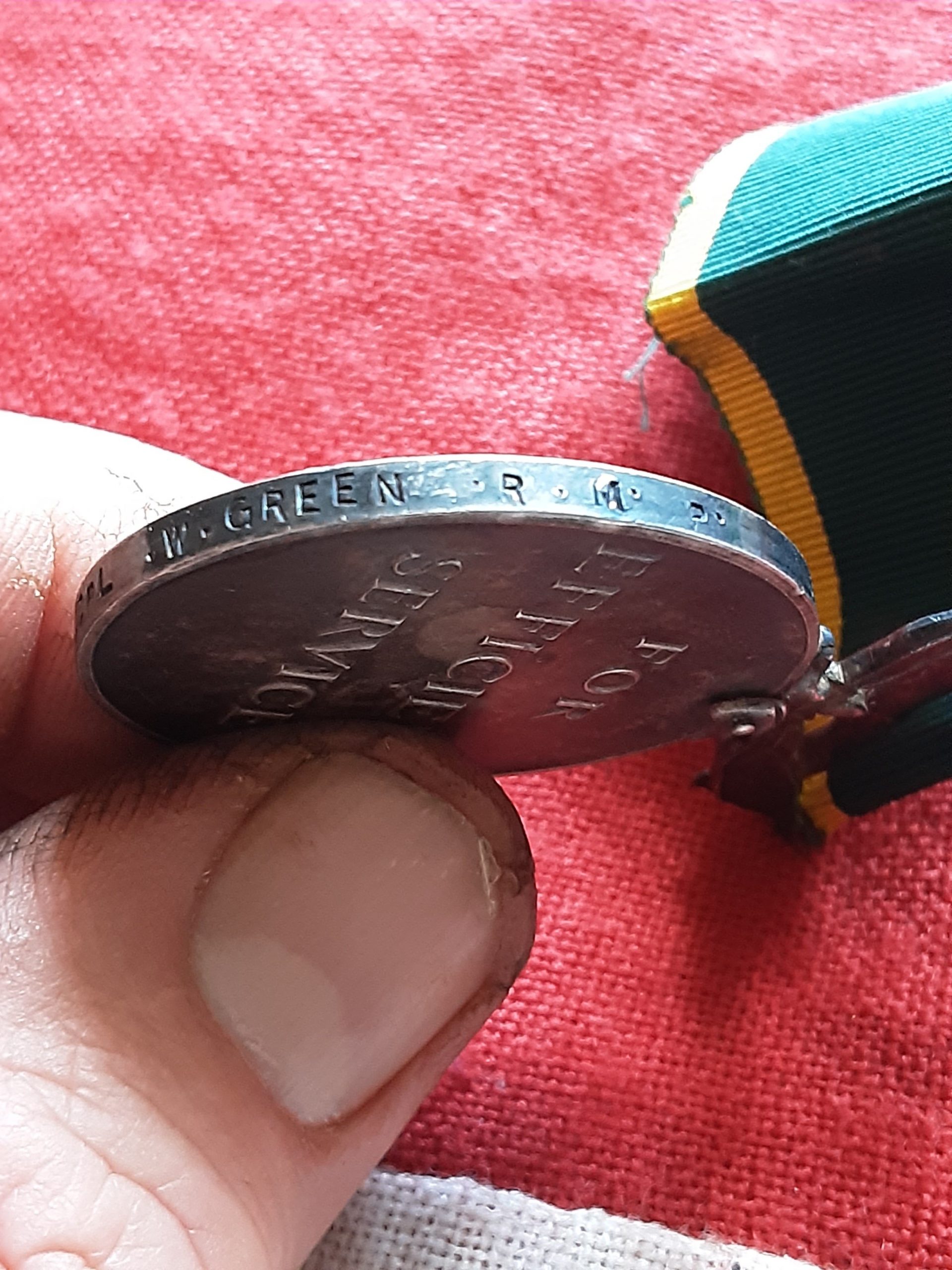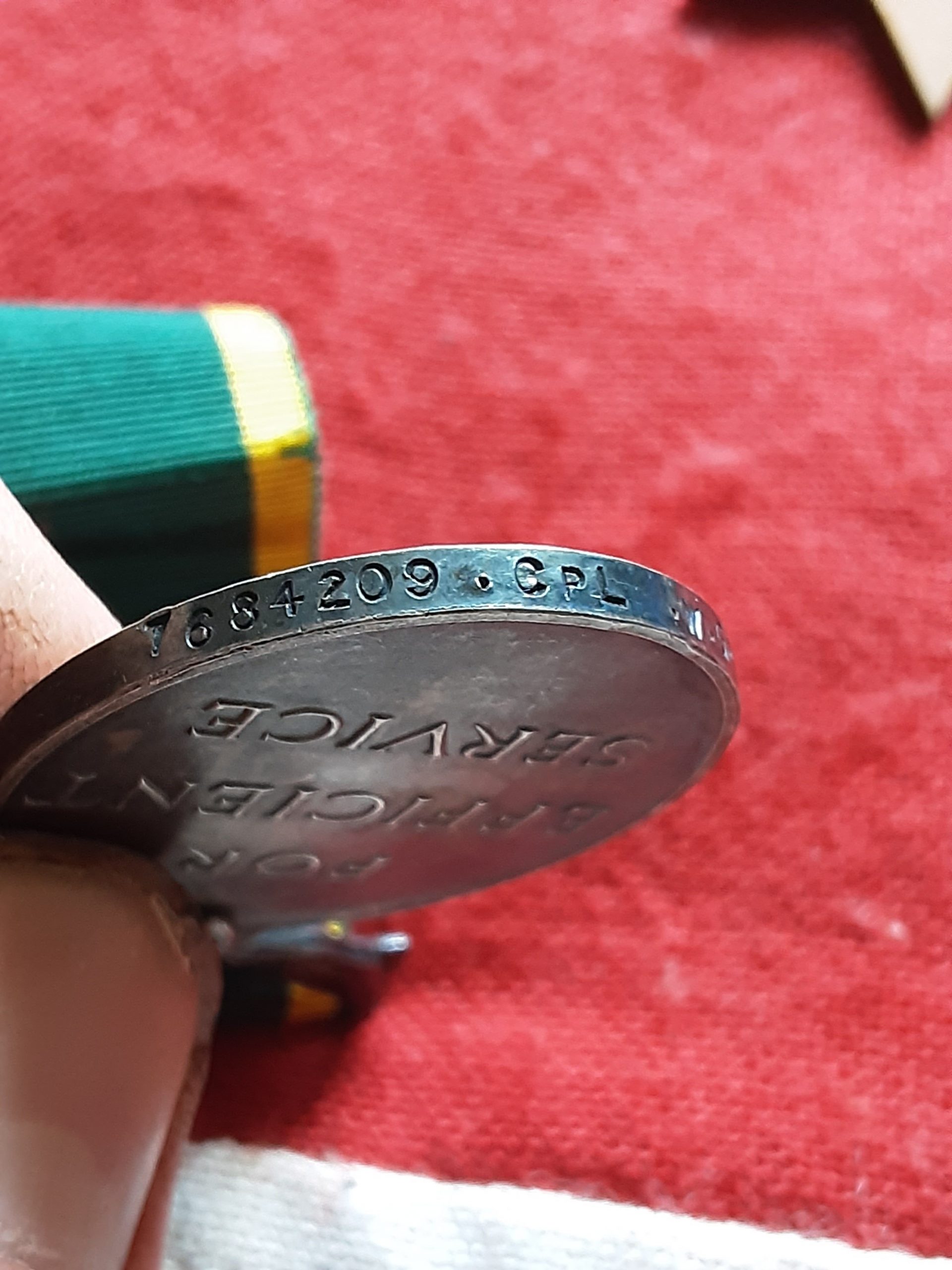 Efficiency Medal with territorial clasp named to 7684209 cpl w green rmp.