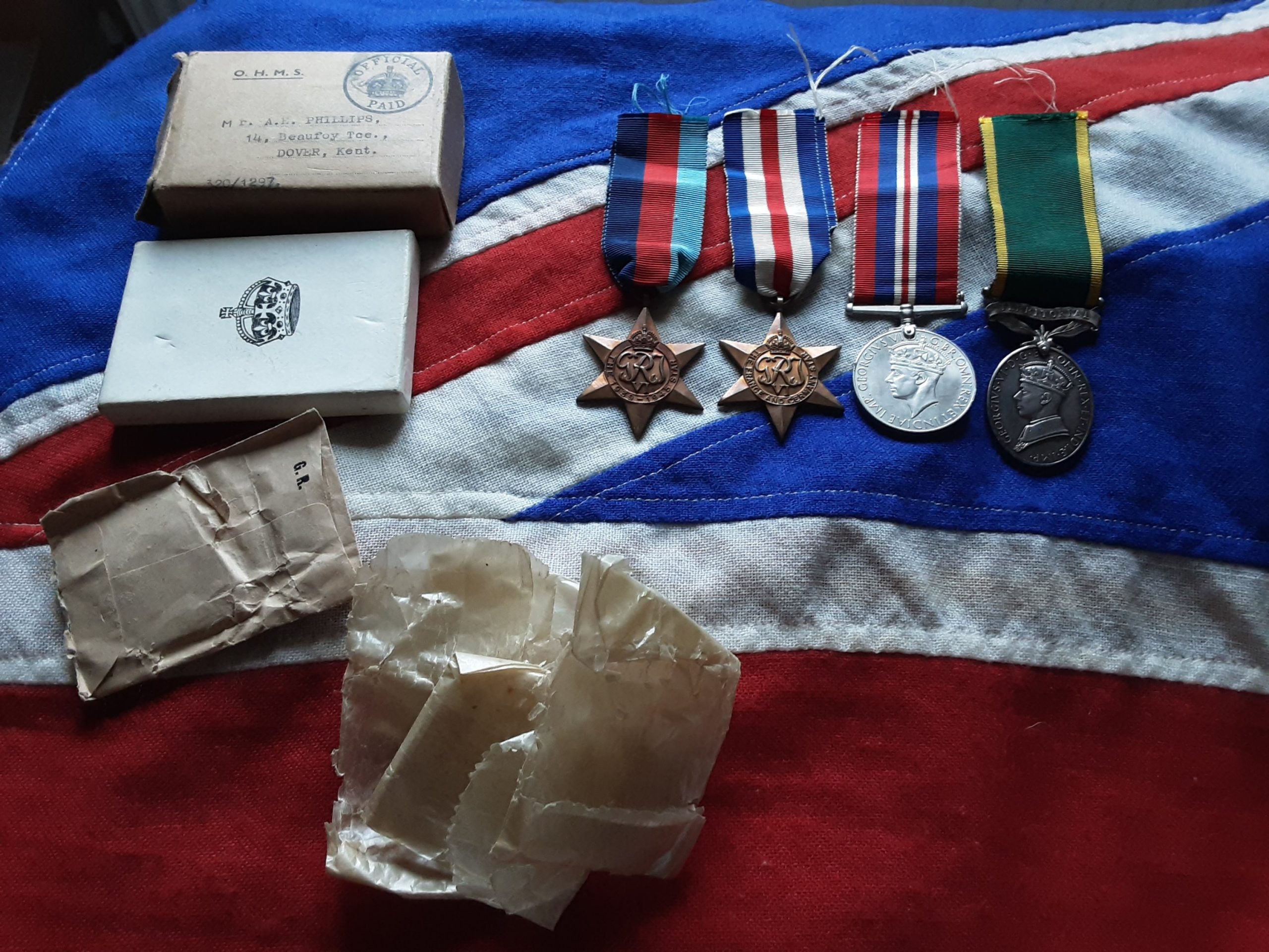 A boxed ww2 1939 star ,France and Germany star and war medals unnamed as issued in box addressed to Mr a e Phillips, 14 beaufoy tce, Dover, Kent ( awarded In January 1950 showing he also served in the rasc).
