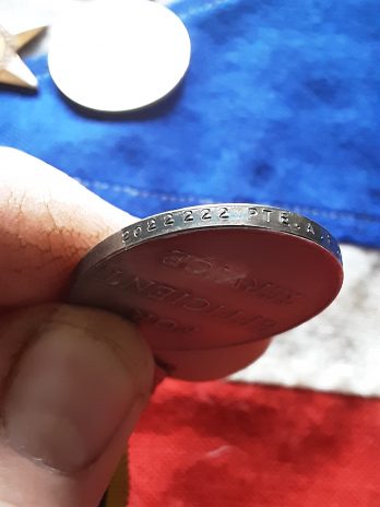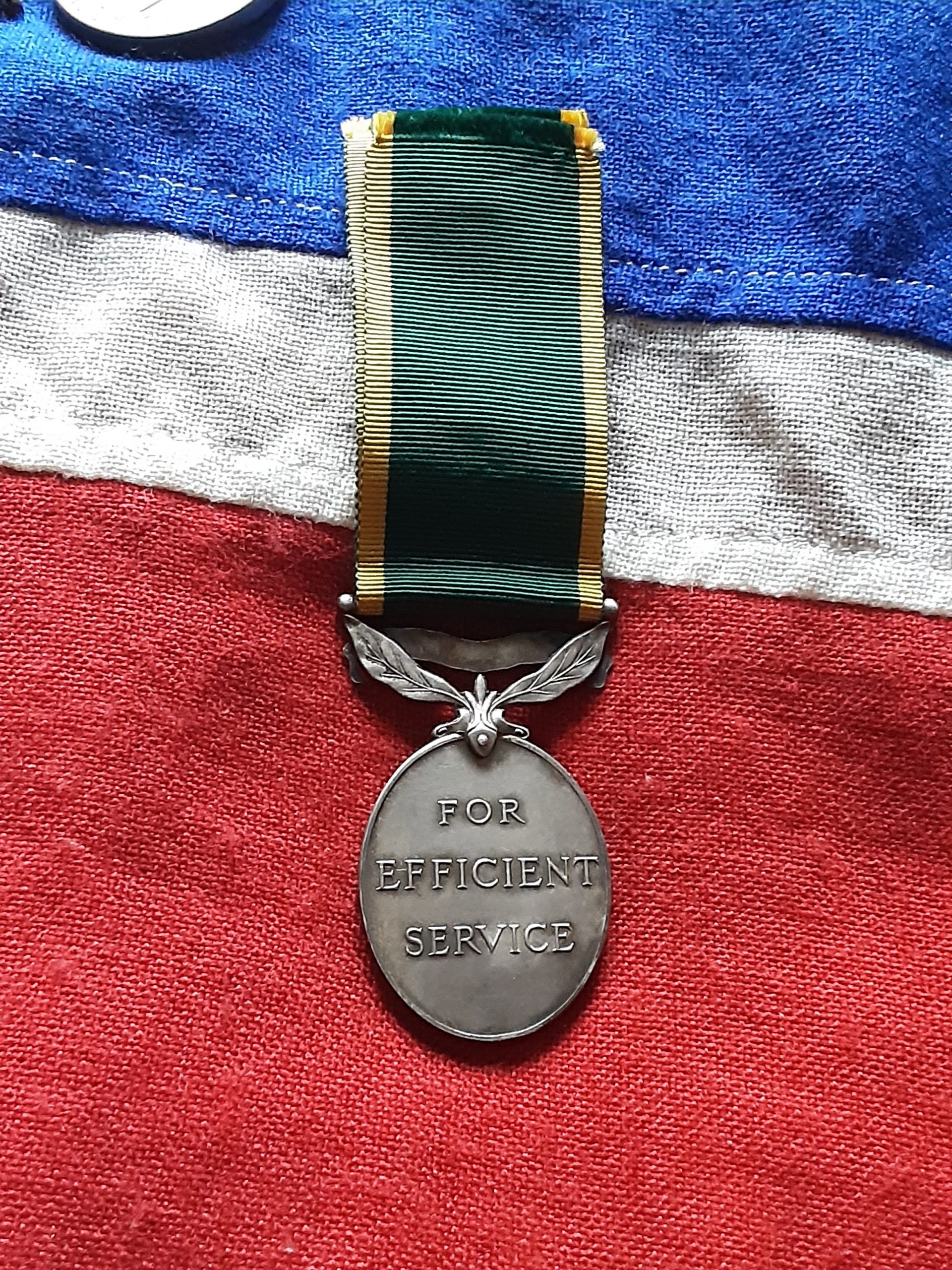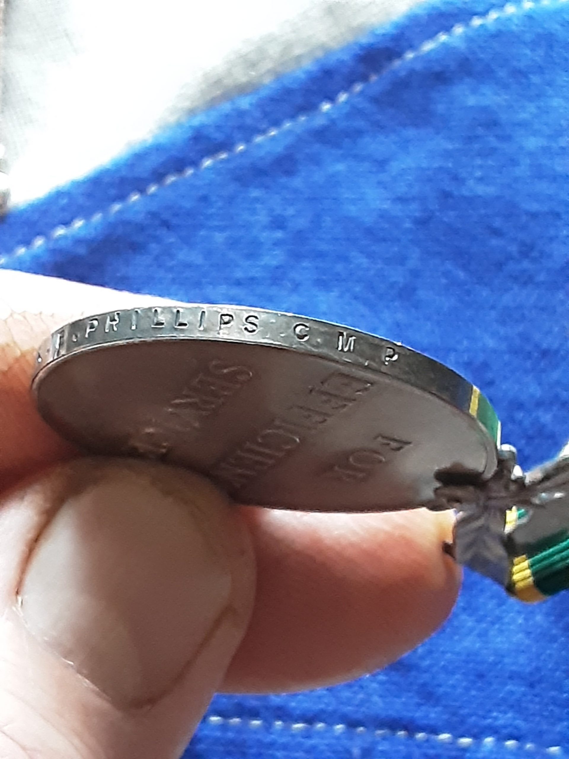 Boxed efficiency medal with territorial bar named to 2022222 pte a e Phillips cmp.