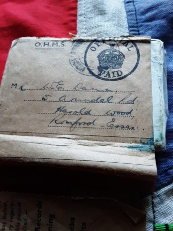 Medal transmittal box named w e dann , 5 Arundel Rd, Harold Wood, Romford, Essex.