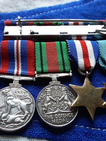 Swing mounted as worn miniature 1939 star ,France and Germany star, Defence and War Medals.