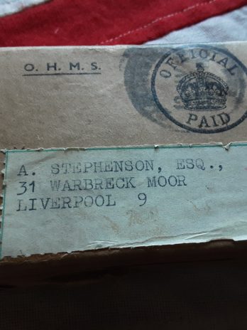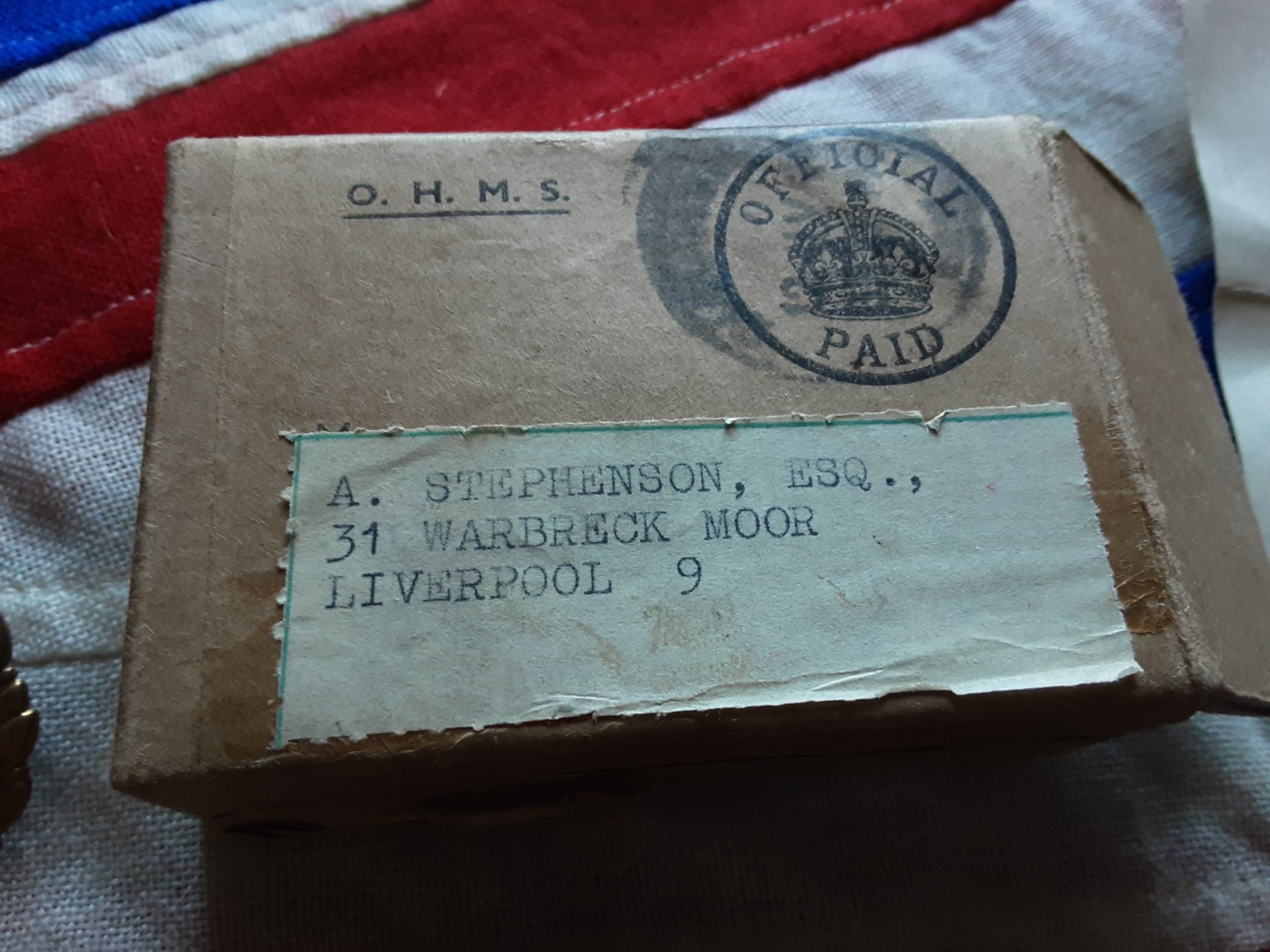 Transmittal box a Stephenson esq ,31 warbreck Moor, Liverpool 9.