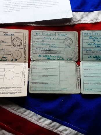 Also 3 identify cards relating to the family Harry’s address given as 149 Harrow view ,Harrow, middlesex & 30 whitefriars Ave, harrow-weald .