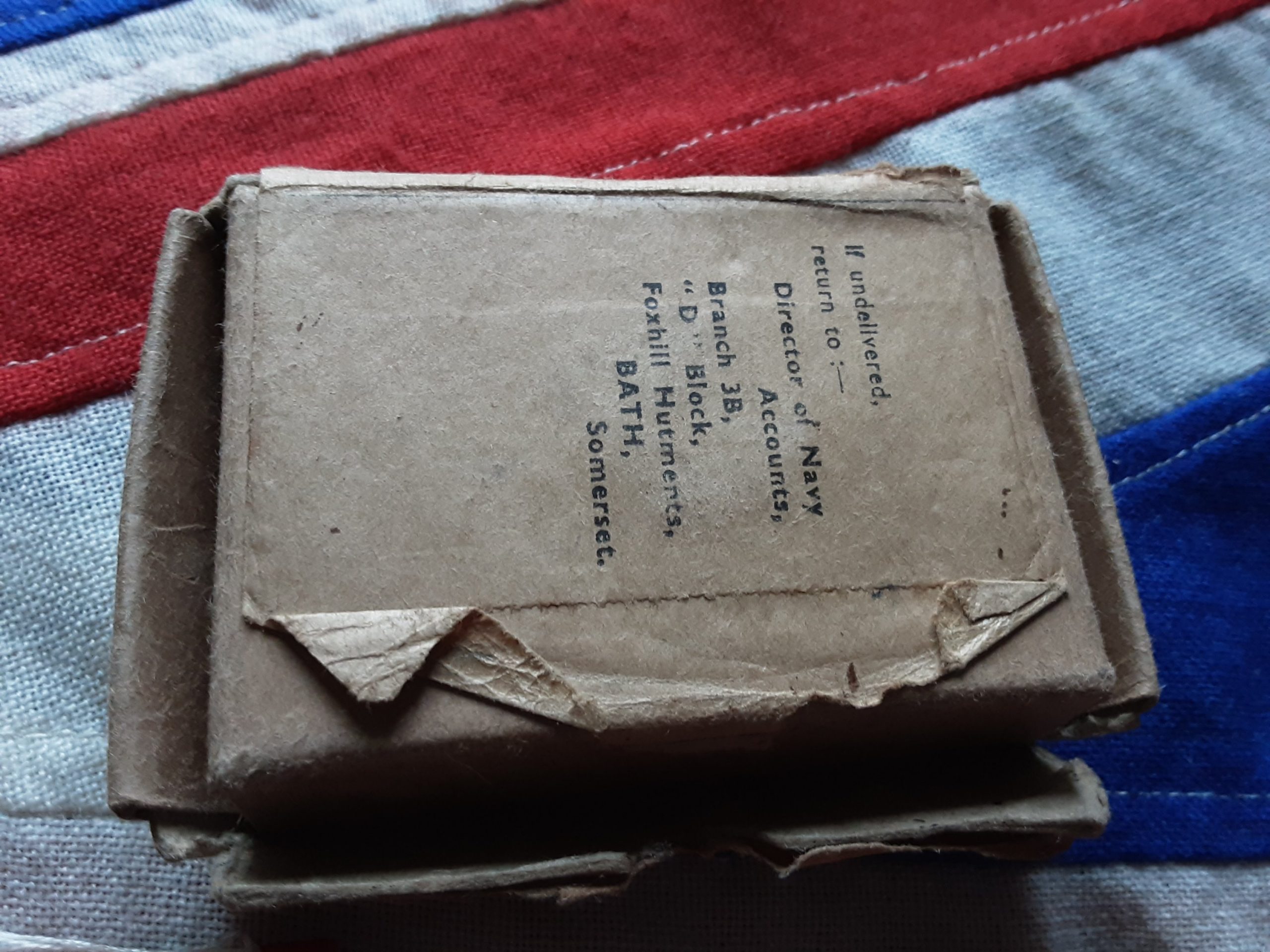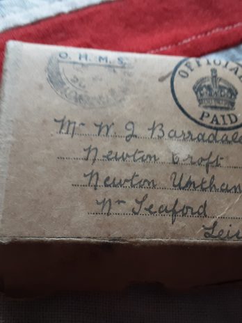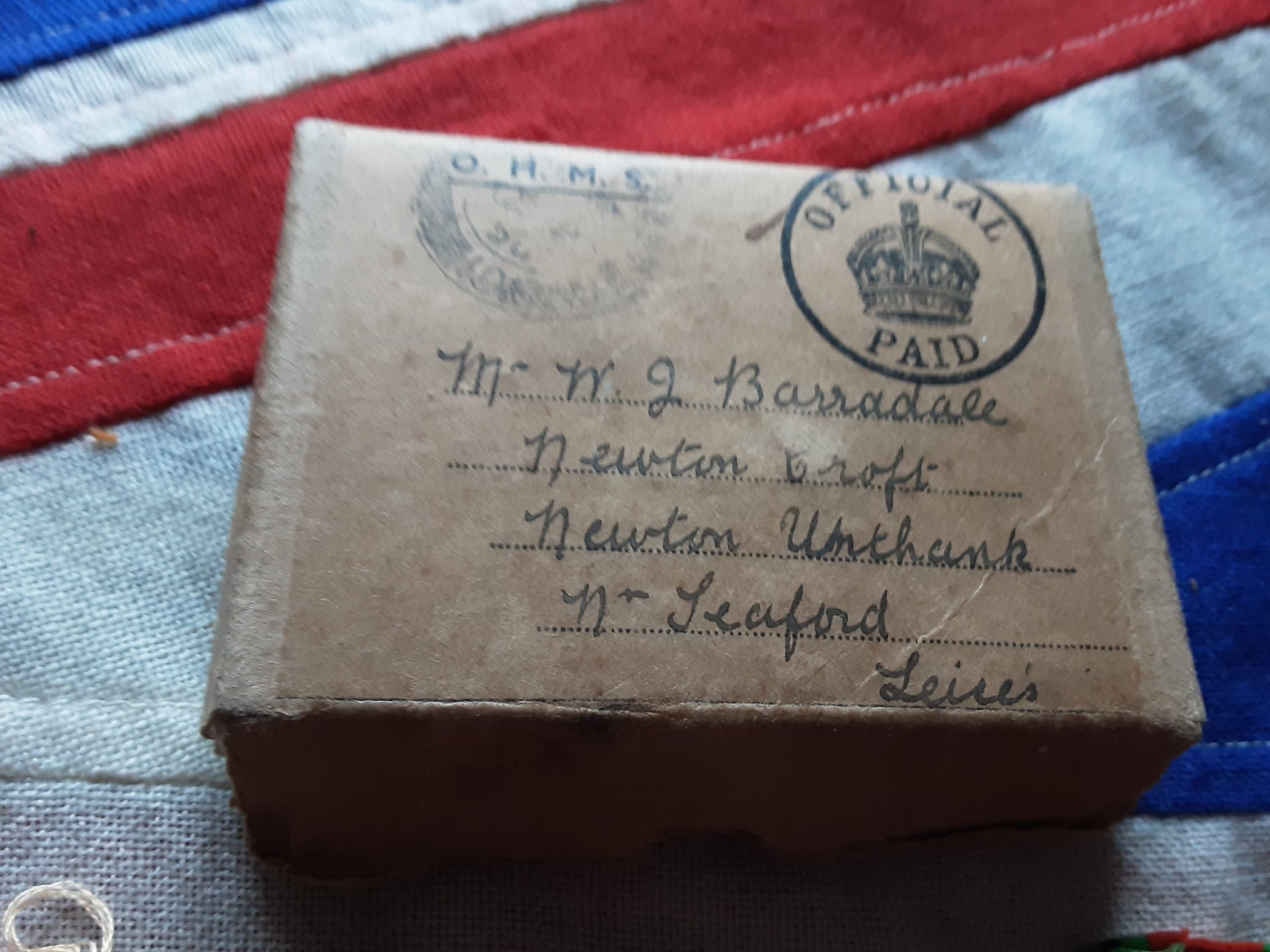 Navy transmittal box named Mr w j barradale of Newton croft ,Newton unthank ,nr Sleaford, leices .