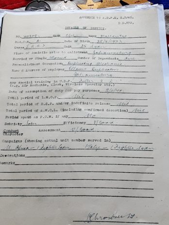 100208 Corporal John William Keith mollentze was born 28th May 1923 at Queenstown a duplicate mechanic living at 106 Lancaster avenue ,craighall Park, Johannesburg.
