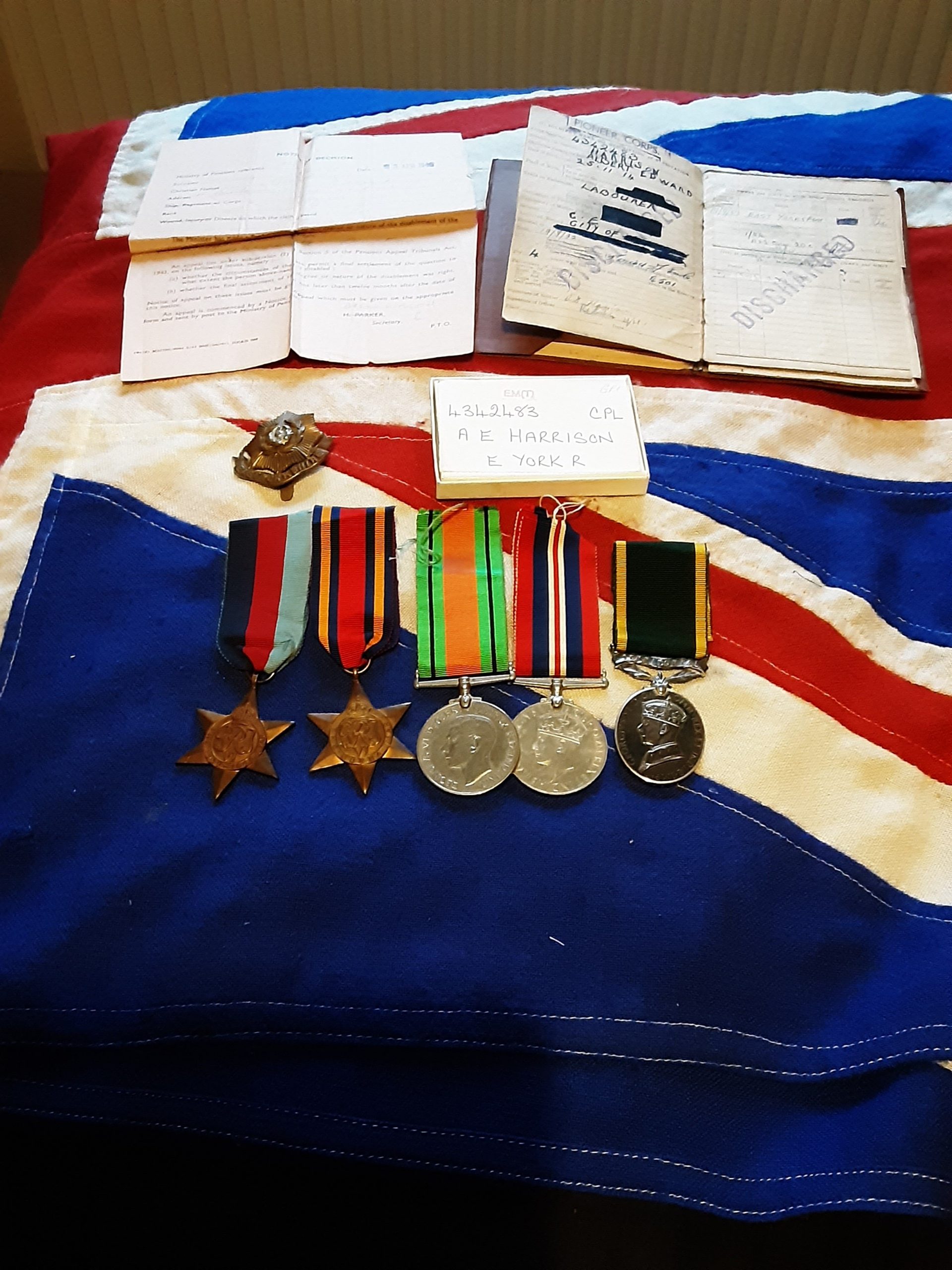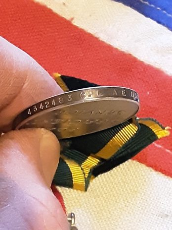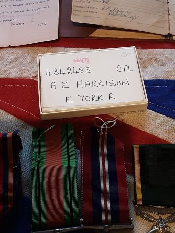 Efficency medal territorial 4342483 cpl a e Harrison e York r .In box of issue .