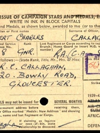 Ww2 medals awarded 1949 to 20 bowly Road, Gloucester.