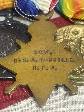 He served with the 21st East Lancashire Royal Field Artillery and went overseas to Egypt with them in October 1914 earning his 1915 Star Trio.