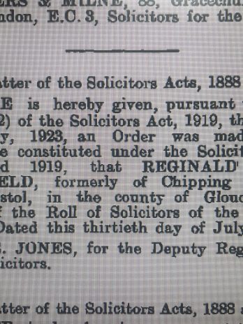 In 1921, we see Reginald working as a solicitor and living with his family and a servant at High Street, Chipping Sodbury.