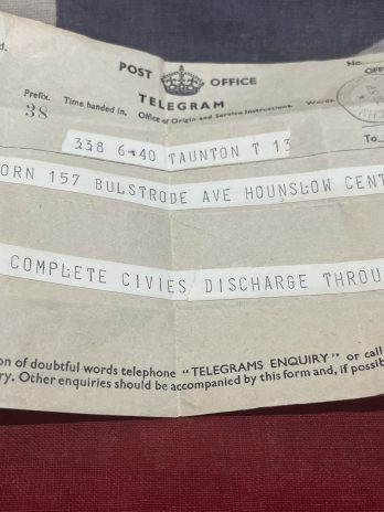 A telegram dated September 1941 which is included with the lot confirms this address and his discharge.