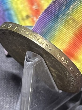 The medal has an original, though faded, silk ribbon.