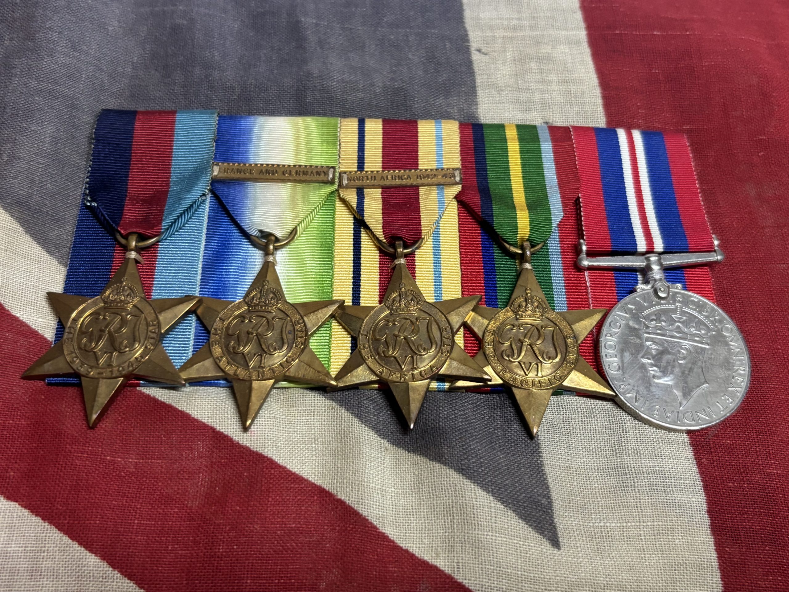A nicely mounted for display group of original WWII medals.